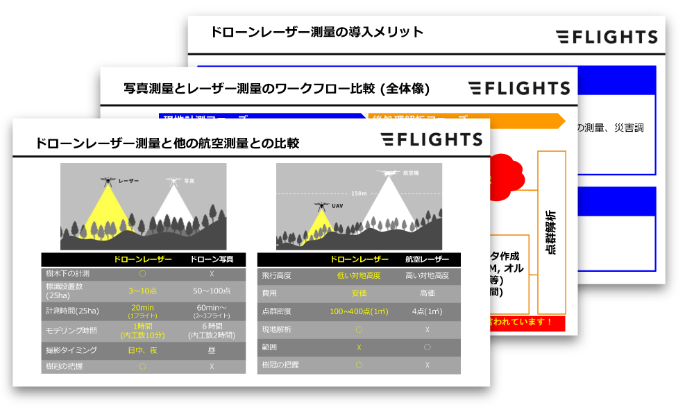 株式会社FLIGHTSが提供する、「ドローンレーザー測量〜航空測量の手法・機器別比較〜」資料(PDF)を無料でダウンロードいただけます。