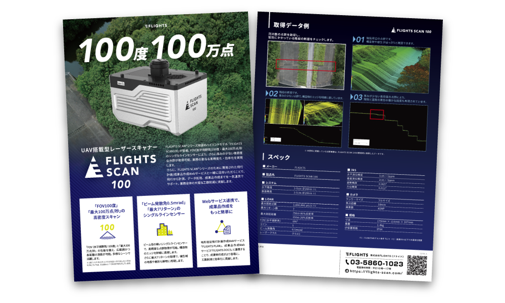 株式会社FLIGHTSが提供する、「FLIGHTS SCAN 100」製品パンフレット(PDF)を無料でダウンロードいただけます。