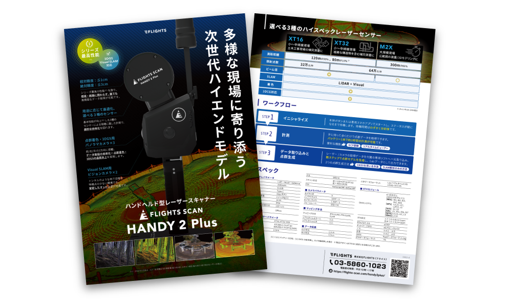 株式会社FLIGHTSが提供する、ハンドヘルド型レーザースキャナー「FLIGHTS SCAN HANDY 2 Plus」製品パンフレット(PDF)を無料でダウンロードいただけます。 ダウンロードをご希望の方はフォームへ入力の上、ご送信ください。ご入力のメールアドレス宛に、ダウンロードURLをお送りいたします。
