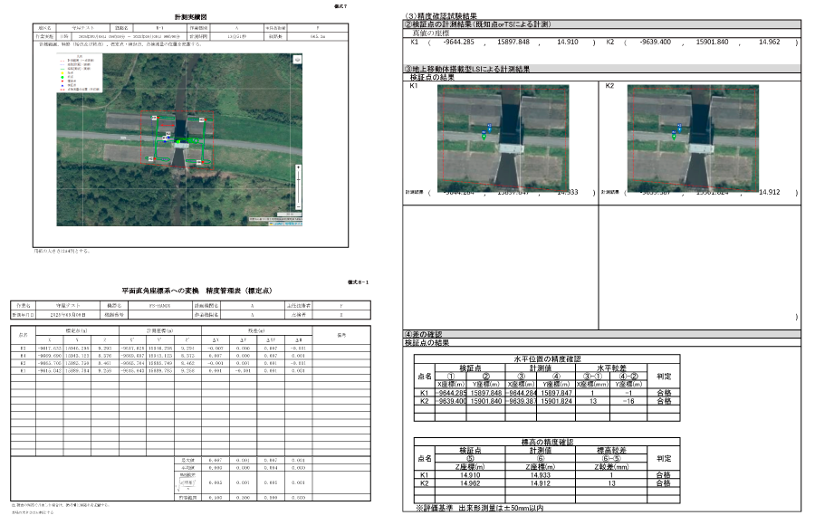 公共測量およびi-Constructionでの利用時に求められる精度確認を実施し、必要となる各種証明書の発行が可能です。